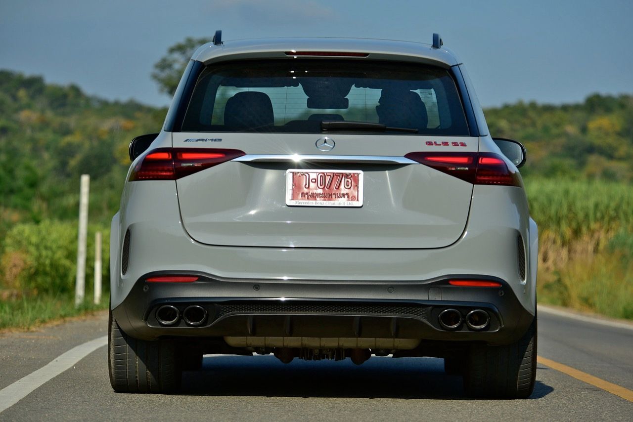 กันสะเทือน Airmatic แบบถุงลมที่มุมทั้งสี่พร้อมกลไกไฟฟ้าในการปรับตั้งค่าการตอบสนอง เหล็กกันโคลงแบบแอคทีฟที่ช่วยลดอาการโคลงตัว (ควรใช้โหมดสปอร์ต) โรเตอร์หรือจานเบรกหน้าที่มีขนาดใหญ่ขึ้น ระบบขับเคลื่อนสี่ล้อ 4MATIC + ปรับแต่งพิเศษ รองรับการส่งกำลังไปยังเพลาหน้า-หลัง ล้อขนาด 22 นิ้ว ล้อหลังยัดยางเส้นเขื่องPilot Sport SUV ขนาด 325/35ZR22 แต่ถึงแม้จะมีการเพิ่มเติมไดนามิกอย่างเต็มข้อ GLE 53 ก็ไม่ใช่รถสปอร์ตตัวเตี้ย มันคือ SUV พันธุ์แท้ที่สืบทอดเอกลักษณ์มาจาก GLK ด้วยเรือนร่างที่ใหญ่โต และสัดส่วนความสูงสไตล์เอสยูวี (ที่ปรับให้เตี้ยลงได้บ้างแต่ไม่มากนัก) คุณไม่สามารถเข้าโค้งแบบเดียวกับที่เคยทำใน AMG GT R หรือแม้แต่ CLS 53 แต่ GLE 53 Hybrid 4Matic+ ก็ปกปิดน้ำหนักตัวได้ดีพอประมาณ สามารถไหลผ่านการจราจรที่คับคั่งได้อย่างหมดจดและคล่องแคล่ว ด้วยการควบคุมที่ให้ความรู้สึกถึงพลังและความว่องไวของชุดบังคับเลี้ยว