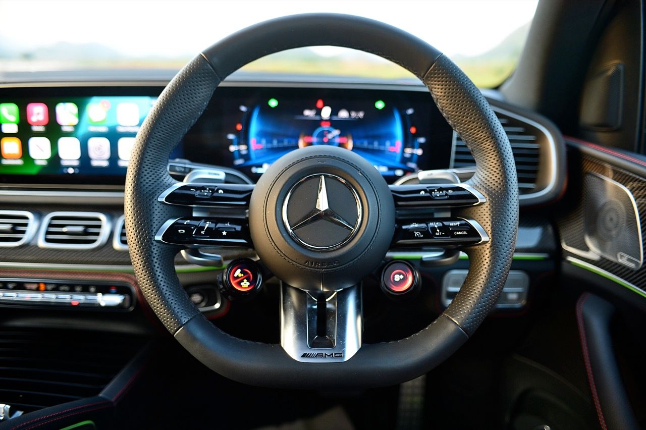 ชุดบังคับเลี้ยวไฟฟ้าอัตราทดน้ำหนักแปรผันไปตามโหมดขับเคลื่อนและความเร็ว ถูกจูนมาให้หมุนได้อย่างอิสระและเที่ยงตรงต่อการขยับของล้อหน้า ทำให้ง่ายต่อการเล็งไปยังทิศทางที่ต้องการ แม้รถจะมีมวลมาก เมื่อปรับการทำงานของระบบกันสะเทือนไปที่โหมด Sport โช้คถุงลมจะปรับตัวเองให้ตอบสนองได้แข็งขึ้น หนักแน่นมากยิ่งขึ้น ลดความสูงลงอีกเล็กน้อย เพื่อการทรงตัวที่ดีเมื่อเปลี่ยนทิศทางเร็วๆ พร้อมกับน้ำหนักพวงมาลัยที่เพิ่มเข้ามาจนรู้สึกตึงมือ Airmatic ไม่เปราะอย่างที่คาดไว้ เนื่องจากแก้มยางไซส์ใหญ่ไม่ได้เตี้ยติดพื้น แก้มยางที่สูงพอสมควรใช้งานได้ดีมากสำหรับการวิ่งเรื่อยๆ ไปซุปเปอร์มาร์เก็ต หรือรับส่งลูกไปโรงเรียน ให้ความสะดวกสบายเมื่อขับผ่านผิวถนนที่ขรุขระ ในเมื่อความสบายของลูกค้าคือจุดขายของ Mercedes-AMG SUV ยุคใหม่ เรื่องดังกล่าวยังคงมีความสำคัญสูงสุดต่อแนวคิดในการพัฒนาและปรุงแต่งยานยนต์ตราดาว การตั้งค่าโหมด Sport+ ทำให้โช้คถุงลมแข็งขึ้น สอดรับกับความเร็วที่เพิ่มขึ้นขณะใช้โหมดสูงสุดผลักดัน GLE 53 ไปยังขอบเขตต้องห้ามในเรื่องสปีดความเร็ว ระบบกันสะเทือนแบบถุงลมยังดูดซับผิวถนนที่มีหลุมบ่อเล็กๆ ได้ดี ด้วยการผ่อนสั้นผ่อนยาวของโช้คอัพถุงลม