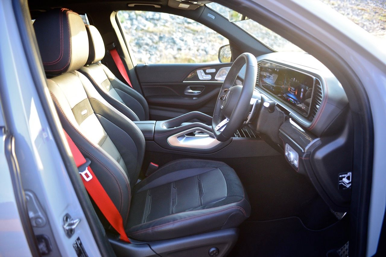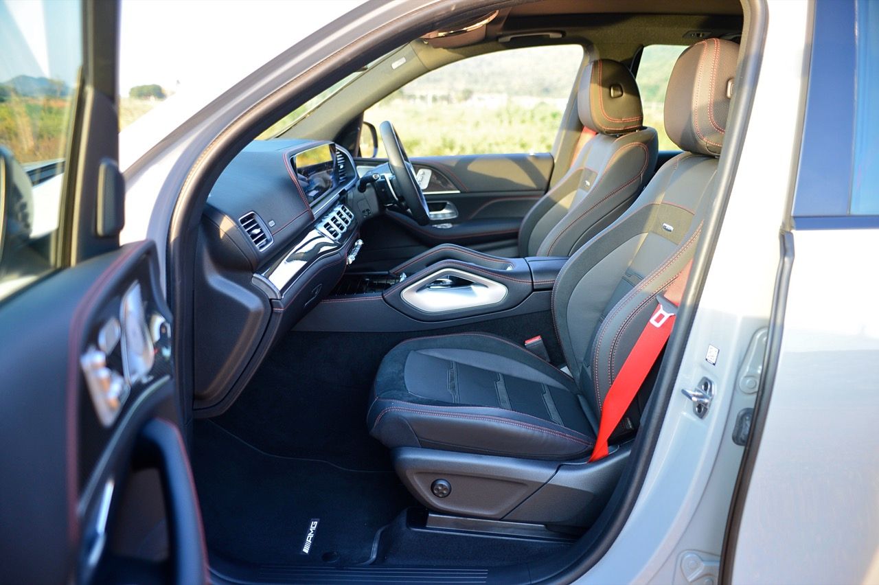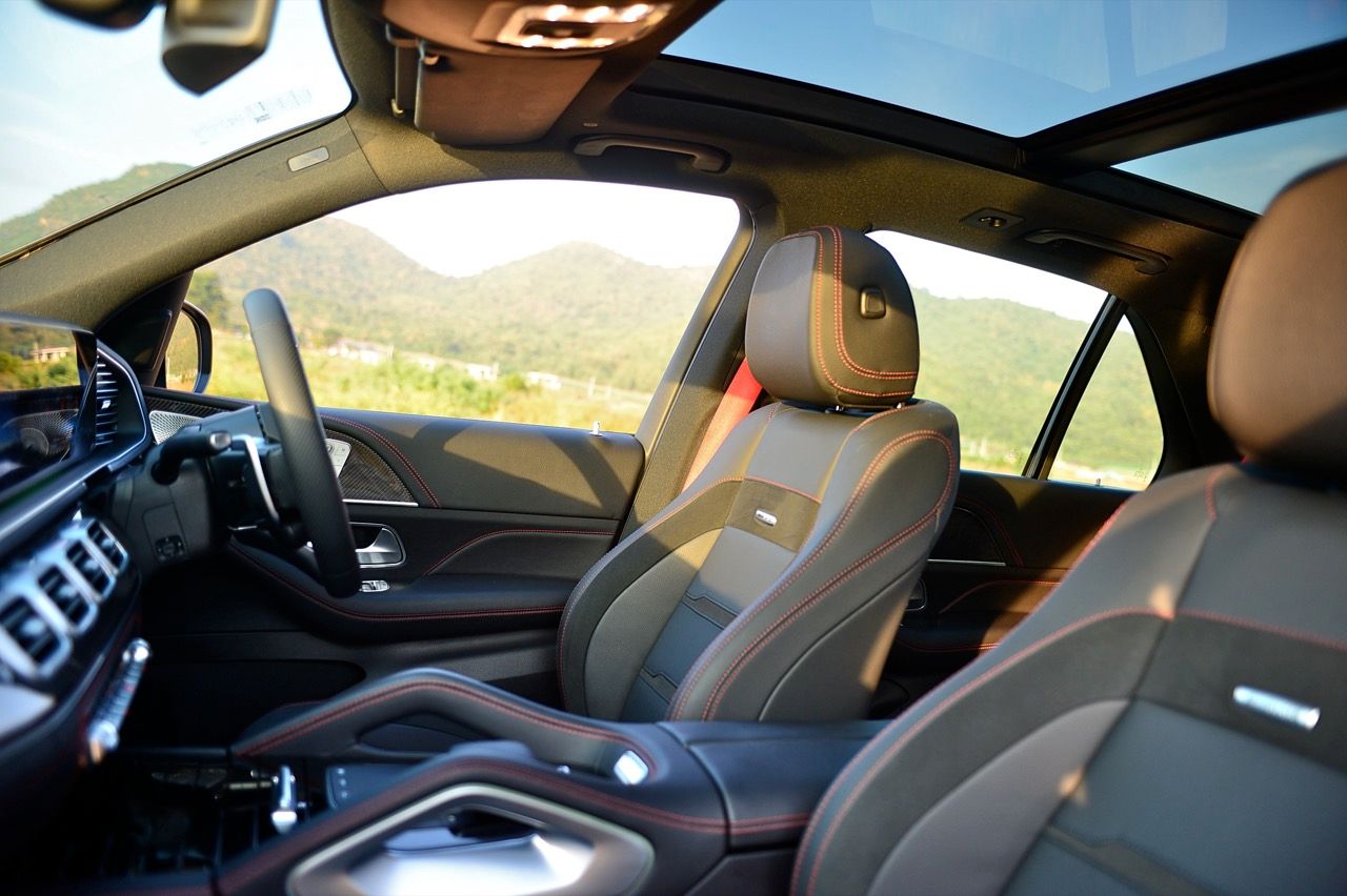 ห้องโดยสาร AMG Interior Package พวงมาลัย AMG Performance steering wheel ระบบพวงมาลัย AMG Steering 3 สเตจ เบาะนั่งหุ้มด้วยหนังและไมโครไฟเบอร์ หลังคากระจก Panoramic Sunroof ระบบปฏิบัติการ MBUX7 แบบ zero-layer concept โปรแกรม AMG หน้าจอธีมพิเศษของ AMG รวมถึงการวัดแทร็กสนามควบคุมผ่านจอกลางแบบ widescreen cockpit ขนาด 12.3 นิ้ว เชื่อมต่อกับ AMG Head-up Display ขนาด 12.3 นิ้ว ติดตั้งระบบนำทางแสดงภาพเสมือนจริง MBUX augmented reality for navigation ระบบเสียง Burmester® surround sound system ลำโพง 13 ตัว กำลังขับ 590 วัตต์ พร้อม Dolby Atmos® โปรแกรมการขับขี่ AMG DYNAMIC SELECT ปรับเลือกได้ 7 รูปแบบ รวมถึงโหมด Off-Road พร้อมการแสดงผลแบบ Transparent bonnet แสดงภาพใต้ท้องรถแบบ real-time ระบบกันสะเทือนแบบ AMG RIDE CONTROL+ ที่ถูกออกแบบให้สอดคล้องกับผิวถนนที่หลากหลาย  Mercedes-AMG ปรับระดับเสียงท่อไอเสียได้ทั้งแบบ BALANCED หรือ POWERFUL ผ่านคอนโซลกลาง หรือบน AMG steering wheel buttons