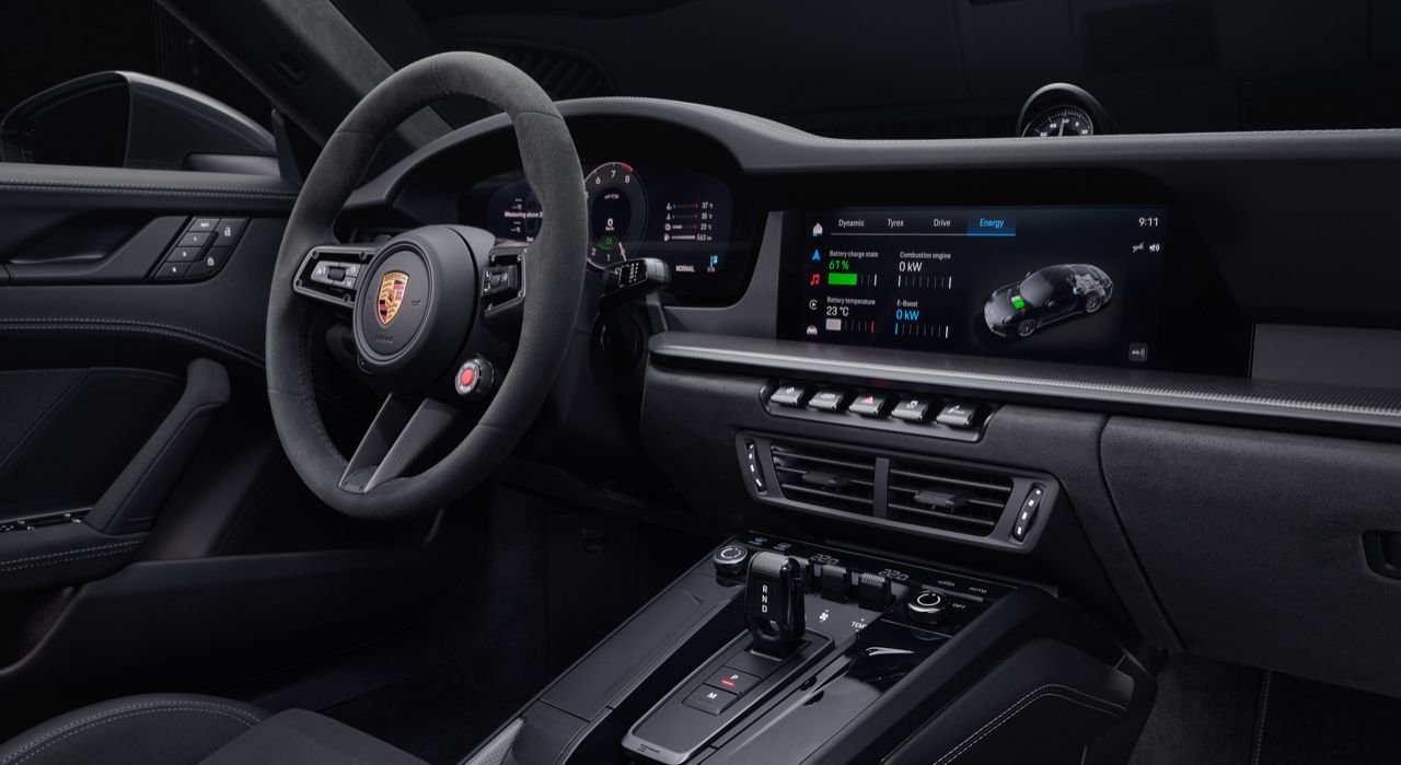911 GTS เครื่องยนต์บ็อกเซอร์ขนาด 3.6 ลิตร พัฒนาใหม่เต็มรูปแบบ ผสานการทำงานร่วมกับมอเตอร์ไฟฟ้าสองตัว เทอร์โบชาร์จเจอร์ และแบตเตอรี่แรงดันสูงขนาดกะทัดรัด มอเตอร์ไฟฟ้าตัวแรกถูกติดตั้งภายในเทอร์โบชาร์จเจอร์ ทำหน้าที่เป็นเครื่องกำเนิดไฟฟ้า สร้างพลังงานไฟฟ้าได้สูงสุดถึง 20 กิโลวัตต์ (27 แรงม้า) ช่วยให้เทอร์โบตอบสนองได้อย่างฉับไว ลดอาการรอรอบ (turbo lag) เพื่อการเร่งที่ลื่นไหลในทุกช่วงความเร็ว