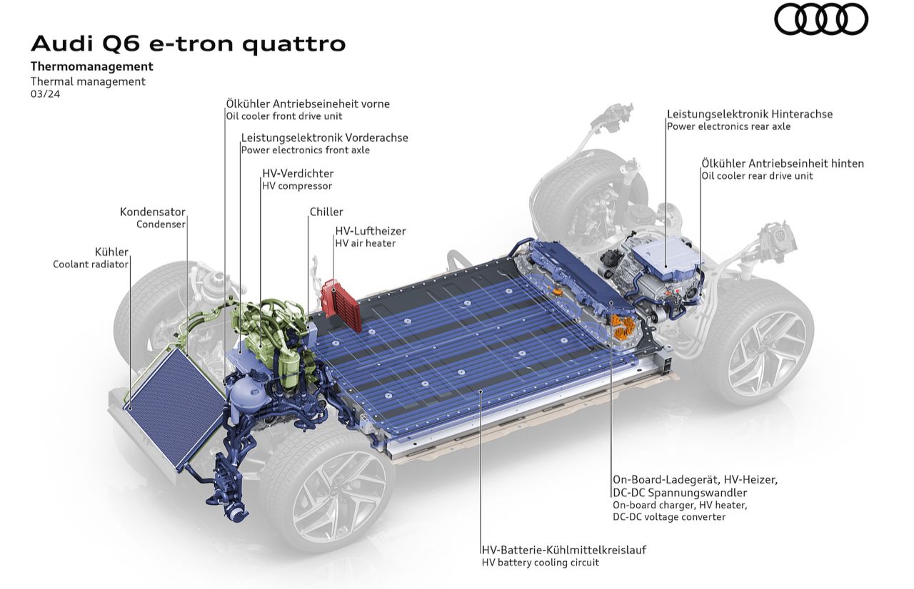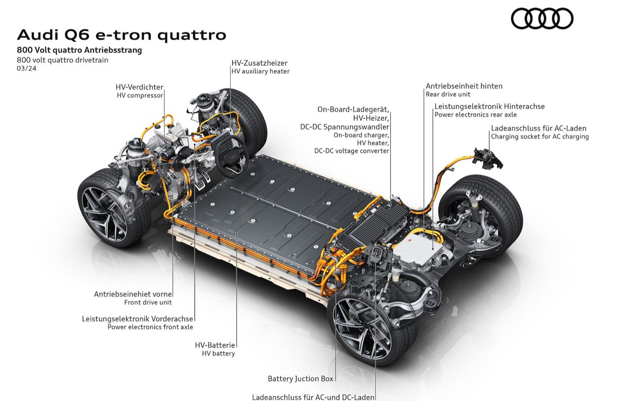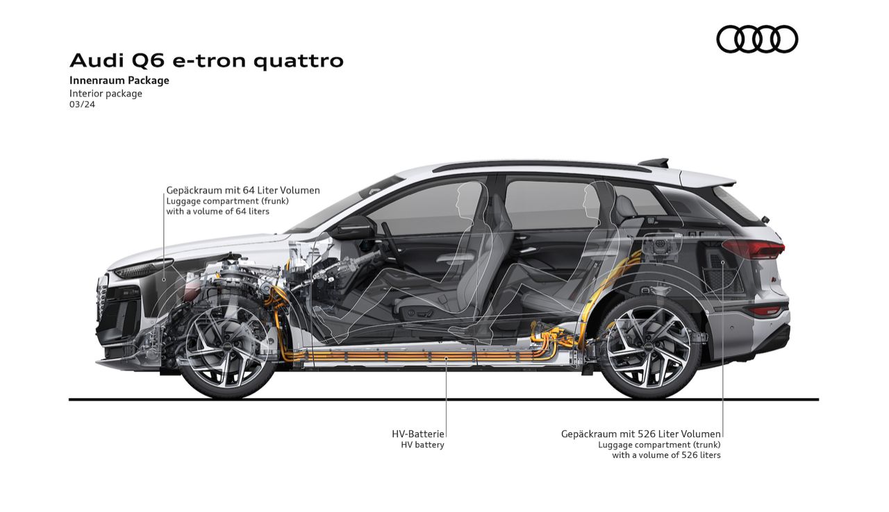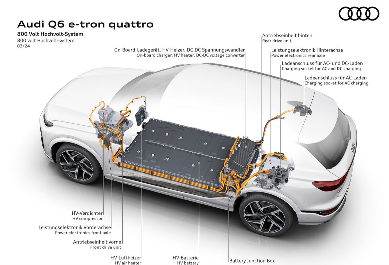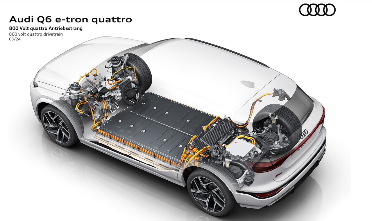 โครงสร้างพื้นฐานของ Q6L คือสถาปัตยกรรม Premium Platform Electric (PPE) ที่ใช้ร่วมกันกับแบรนด์รถสปอร์ตอย่าง Porsche หมายความว่า Q6 และ SQ6 จะได้รับประโยชน์จากฮาร์ดแวร์ไฟฟ้า 800 โวลต์ของ Audi RS E-Tron GT