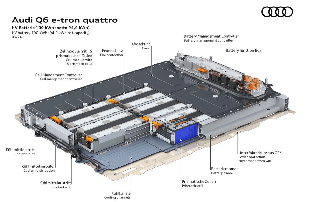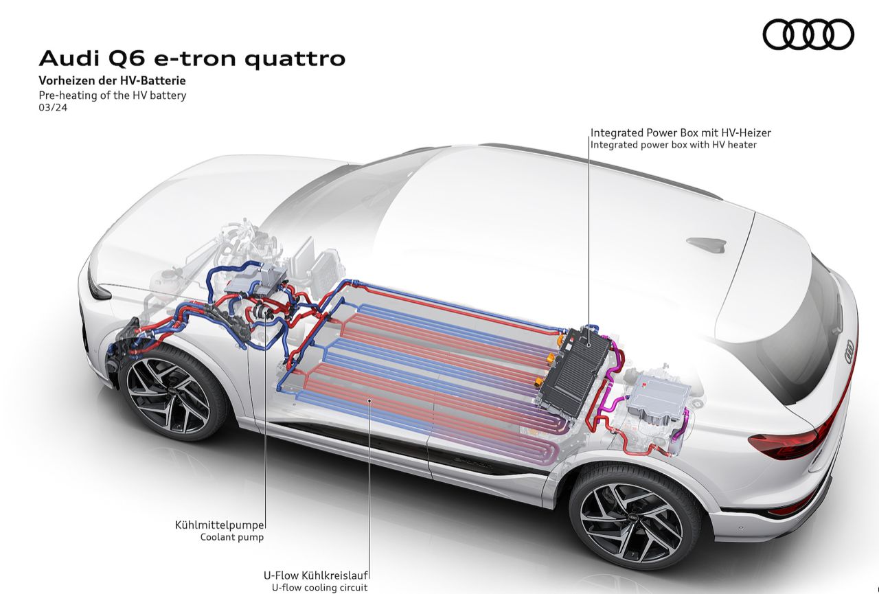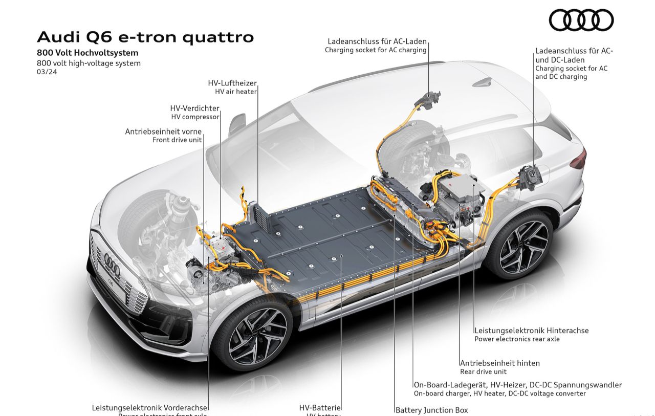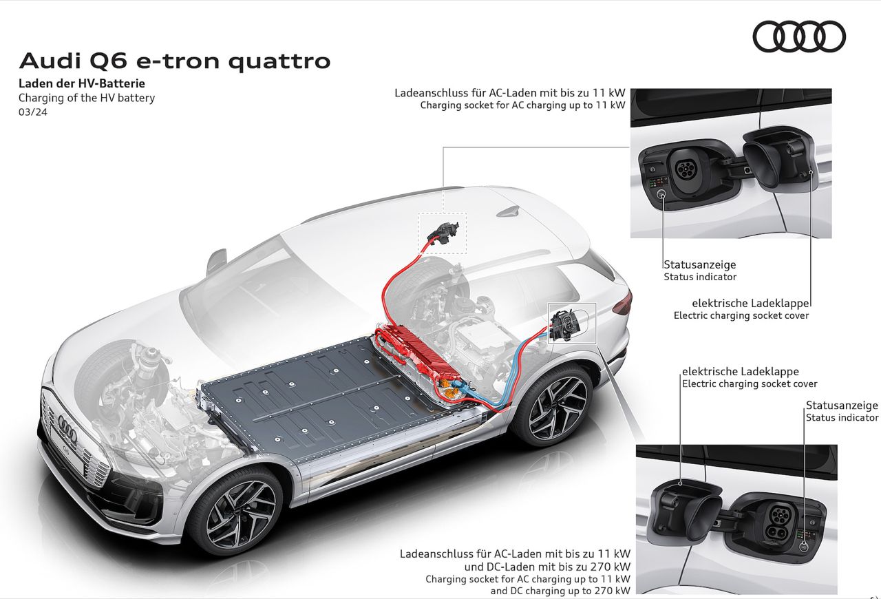 Audi Q6 E-Tron สามารถชาร์จเร็วสูงสุดได้ 270 กิโลวัตต์ สถานีชาร์จสาธารณะกับไฟกระแสตรง DC ขนาด 350 กิโลวัตต์ ทำให้แบตเตอรี่เปลี่ยนระดับพลังงานไฟฟ้า จาก 10 เป็น 80- เปอร์เซ็นต์ ด้วยสถานะการชาร์จเร็วในเวลาประมาณ 30 นาที