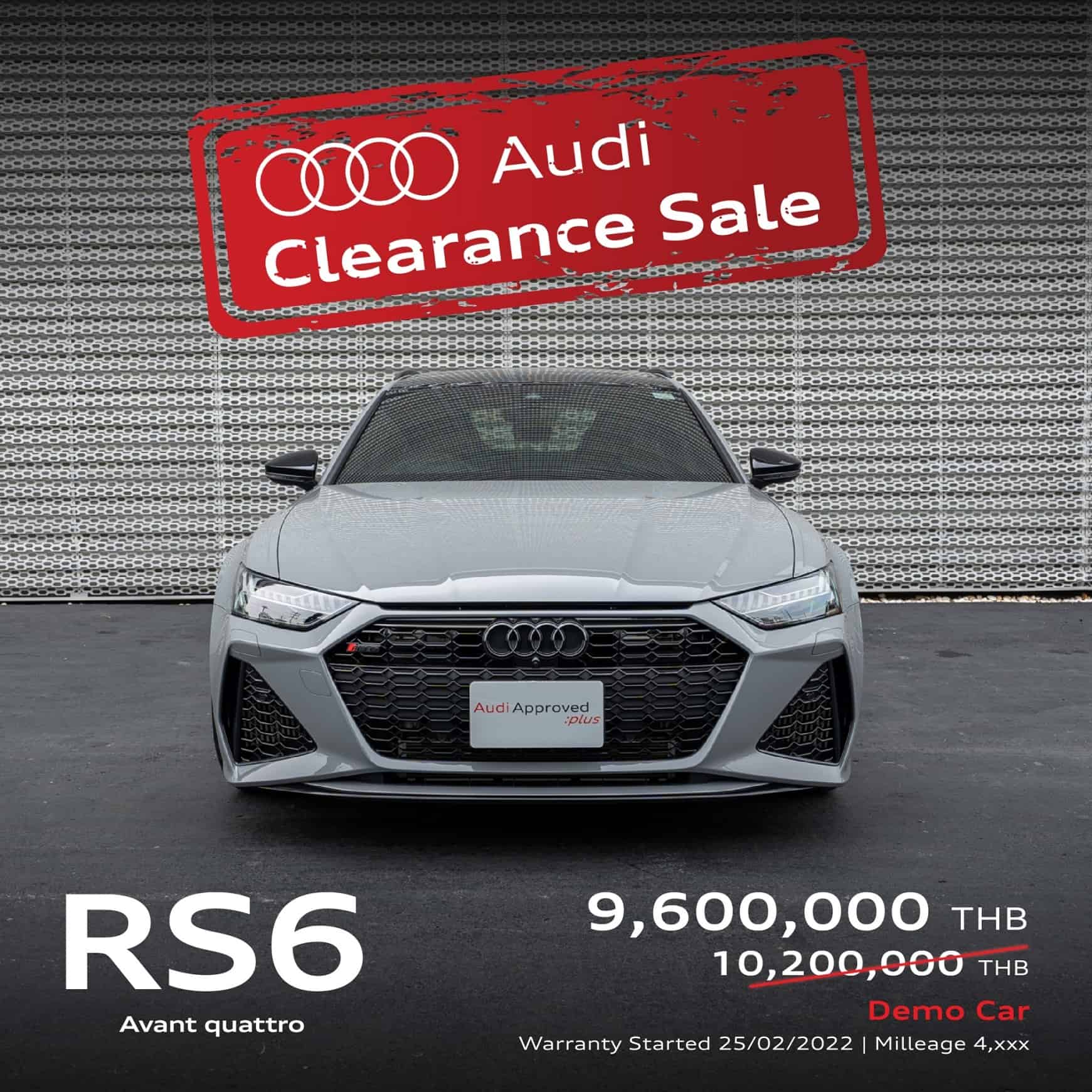- Audi RS 6 Avant รถสมรรถนะซุปเปอร์คาร์ ไมล์น้อยเพียง 4,xxx กิโลเมตร จาก 10.2 ล้าน เหลือ 9.6 ล้าน