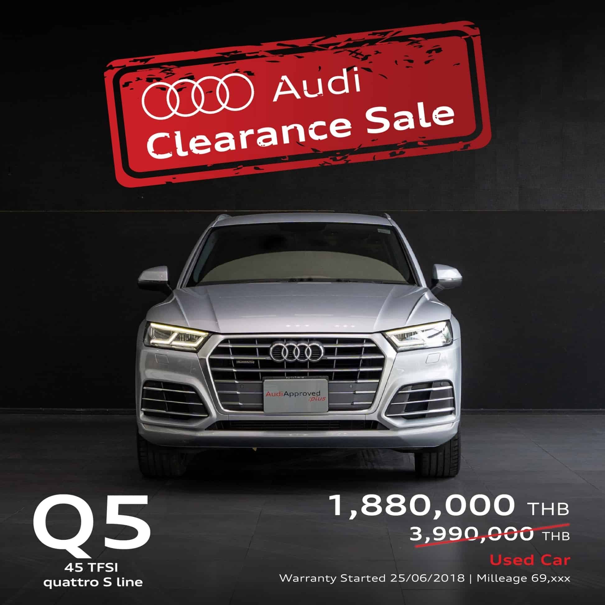 นายกฤษณะกร เศวตนันทน์ ประธานเจ้าหน้าที่บริหาร อาวดี้ ประเทศไทย เปิดเผยว่า “จากการดำเนินธุรกิจในประเทศไทยที่ผ่านมา กิจกรรมทางการตลาดประจำปี ที่มีกระแสตอบรับจากลูกค้าดีมากๆ คือ Audi Clearance Sale คงคอนเซ็ปต์ ของการจัดงาน “Audi Clearance Sale” โดยยกกองทัพรถผู้บริหารป้ายแดง ไมล์น้อย รถทดลองขับ รถยูสคาร์ในสต๊อกสภาพเยี่ยมกว่า 60 คัน มาจัดรายการในราคาสุดพิเศษ “ลดเป็นล้าน หลากหลายรุ่น” รถทุกคันยังได้รับการบำรุงรักษาอย่างดี มีสภาพดีทั้งภายนอกภายใน ไมล์น้อย และการันตีคุณภาพด้วยมาตรฐาน Audi approved plus พร้อมการรับประกันคุณภาพของรถยนต์ต่อเนื่องจนครบ 5 ปี หรือระยะทาง 150,000 กิโลเมตร พร้อมบริการช่วยเหลือฉุกเฉินทั่วประเทศตลอด 24 ชั่วโมง นับจากวันที่การรับประกันเริ่มต้น”